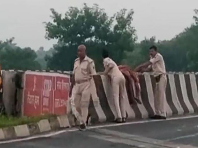 पोलिसांचं लाजिरवाणं कृत्य, रस्त्यावरील मृतदेह काठीने उचलून कालव्यात फेकला