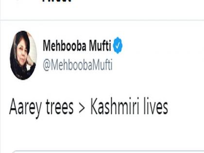 मुंबईमधील आरे कॉलीनीमधील झाडांचा विषय हा काश्मीरमधील लोकांच्या आयुष्यापेक्षा अधिक महत्वाचा आहे असा टोला मेहबुबा मुफ्ती यांनी लगावला आहे. मेहबुबा मुफ्ती यांनी सोमवारी (7 ऑक्टोबर) आपल्या ट्विटर अकाऊंटवरून Aarey trees > Kashmiri lives असं ट्वीट केलं आहे. आरेतील झाडे ही काश्मीरमधील लोकांच्या आयुष्यापेक्षा अधिक महत्वाचं असल्याचं त्यामध्ये म्हटलं आहे.