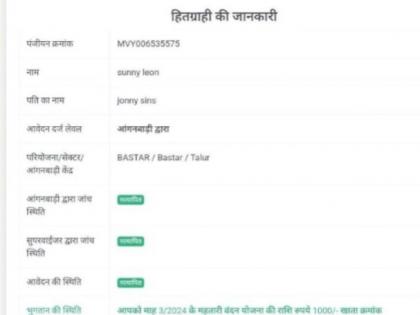 अभिनेत्री सनी लिओनीच्या नावाने अर्ज भरून पैसे लाटणाऱ्याला पोलिसांनी अटक केली. महतारी वंदन योजनेतंर्गत अर्ज दाखल करून आरोपी प्रत्येक महिन्याला हजार रुपये घेत होता. ही बाब जेव्हा प्रशासनाच्या निदर्शनास आले, तेव्हा याची चौकशी करण्यात आली.