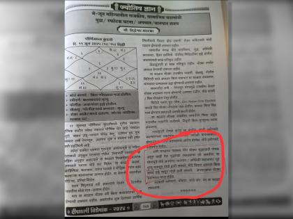 विमान अपघाताच्या पार्श्वभूमीवर सध्या एका मराठी दिवाळी विशेषांकाचा फोटो व्हायरल होतो आहे. या फोटोत हा दिवाळी विशेषांक २०२४ मधील असल्याचे दिसते. यातील पान क्रमांक २७३ वर श्री. सिद्धेश्वर मारटकर यांनी भविष्याचा अंदाज वर्तवला आहे. त्यानुसार, मे आणि जून २०२५ या काळात मोठी युद्धे, स्फोटक घटना, अपघात किंवा घातपात शक्य असल्याची भविष्यवाणी करण्यात आली होती. या भविष्यावाणी विस्तृत अंदाज व्यक्त करताना शेवटच्या परिच्छेदात विमान अपघात होण्याची शक्यता वर्तवण्यात आली होती. शेवटच्या परिच्छेदात लिहिले आहे की- 'शनी मंगळाचा षडाष्टक योग मोठ्या युद्धासाठी पोषक असून काही देश युद्धाच्या उंबरठ्यावर उभे असतील. या योगामुळे मोठे अपघात / घातपात / अतिरेकी कारवाया / गूढ मृत्यू यातून मोठी हानी संभवते. मोठे विमान अपघात किंवा हवाई हल्ले यातून मोठी हानी संभवते. क्षेपणास्त्रांचा मोठ्या प्रमाणावर वापर होईल. सरकारी कर्मचारी, डॉक्टर यांचे संप, बंद या काळात संभवतात.' सध्या या मराठी दिवाळी विशेषांकाचा फोटो व्हायरल होताना दिसत आहे.