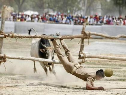 अखिलेश-मायावतींचं हेलिकॉप्टर उतरताना वळू बुजला, एकेकाला मारत पळत सुटला!