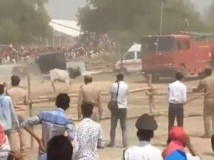 मात्र या वळूला रोखण्याच्या प्रयत्नात दोन जण जखमी झाले. तसेच बघ्यांचीही बरीच पळापळ झाली. या घटनेचा अखिलेश यादव यांनी आपल्या भाषणातही उल्लेख केला. दरम्यान, याआधी उत्तर प्रदेशचे मुख्यमंत्री योगी आदित्यनाथ यांच्या सभेवेळी सभास्थळाजवळील हेलिपॅडवर वळू घुसला होता.