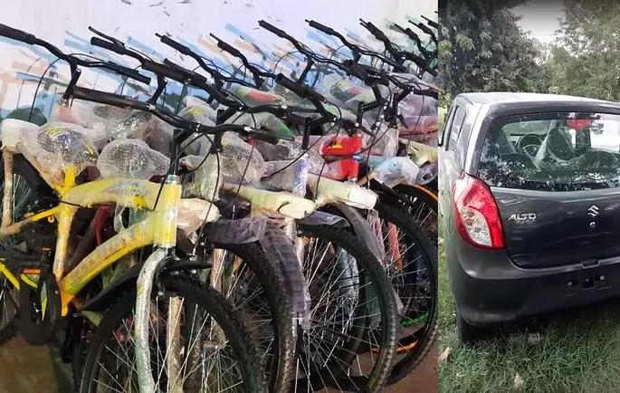 रांची - झारखंडचे शिक्षणमंत्री 2 ऑल्टो कार, एक मोटारसायकल आणि जवळपास 300 सायकलींची खरेदी केली आहे. झारखंड अकॅडमीक कॉन्सिलच्या (जॅक) परीक्षांच्या निकालाची घोषणा करत शिक्षणमंत्र्यांनी टॉपर्स विद्यार्थ्यांना अल्टो कार देणार असल्याचं सांगतिलं. शिक्षणमंत्री जगरनाथ महतो यांनी दिलेला शब्द पाळत, लवकरच या कार, मोटारसायकल व सायकलींचे बक्षीस वाटप करण्यात येणार आहे.