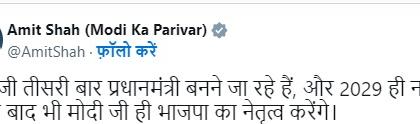 हिंदी वृत्तवाहिनी एबीपीशी बोलताना अमित शाह यांनी 2029 च्या लोकसभा निवडणुकीत भाजप कोणाच्या नेतृत्वात निवडणूक लढवणार, याबाबत माहिती दिली. शाह म्हणाले की, "नरेंद्र मोदी 2029 चा कार्यकाळ पूर्ण करतील आणि 2029 नंतरही भारतीय जनता पक्षाच्या निवडणूक प्रचाराचे नेतृत्व नरेंद्र मोदीच करतील." याचाच अर्थ आगामी निवडणुकाही भाजप पंतप्रधान मोदींच्या नेतृत्वाखाली लढणार असल्याचे स्पष्टझाले आहे.