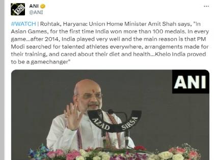 हरयाणातील रोहतक येथे बोलताना अमित शहा यांनी भारतीय खेळाडूचं अभिनंदन केलं. तसेच २०१४ नंतर भारत प्रत्येक खेळात पुढे जात असल्याचे त्यांनी नमूद केलं. केंद्रीय गृहमंत्री अमित शाह म्हणाले, "भारतानं आशियाई क्रीडा स्पर्धेत प्रथमच १०० हून अधिक पदकं जिंकली. २०१४ नंतर भारत प्रत्येक खेळात खूप चांगला खेळला आहे. याचे मुख्य कारण म्हणजे पंतप्रधान मोदी. कारण त्यांनी टॅलेंटेड खेळाडू शोधले, ज्यामुळे भारताला हे यश मिळालं. खेळाडूंच्या प्रशिक्षणाची व्यवस्था केली आणि त्यांच्या आहाराची तसेच आरोग्याची काळजी घेतली. यादरम्यान 'खेलो इंडिया' गेम चेंजर ठरला."