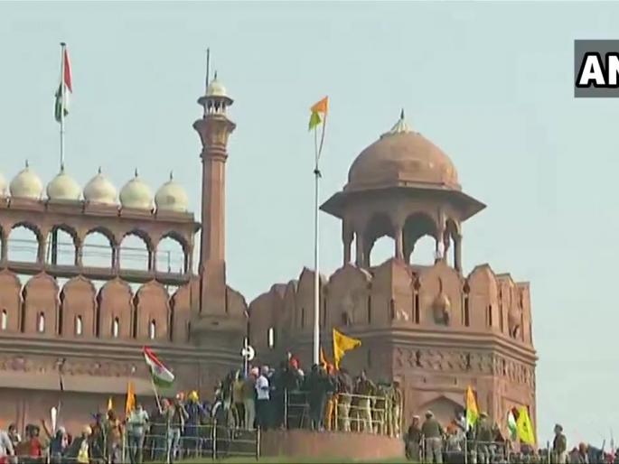 नवी दिल्ली - प्रजासत्ताक दिनी राजधानी दिल्लीत अभूतपूर्व परिस्थिती निर्माण झाली आहे. कृषी कायद्यांना विरोध करत असलेल्या शेतकरी आंदोलकांनी आज ट्रॅक्टर मोर्चा काढला. मात्र सुरुवातीलाच हे आंदोलन नियंत्रणाबाहेर गेले असून, आंदोलक शेतकऱ्यांनी राजधानी दिल्लीत प्रवेश करत लाल किल्ल्यावर कब्जा केला आहे. तसेच या ठिकाणी शेतकऱ्यांनी आपला झेंडा फडकवला आहे.केंद्र सरकारने लागू केलेल्या कृषी कायद्यांविरोधात गेल्या दोन महिन्यांपासून दिल्लीच्या सीमेवर शेतकऱ्यांकडून आंदोलन सुरू आहे. दरम्यान, या आंदोलक शेतकऱ्यांनी आज ट्रॅक्टर रॅली काढण्याचे नियोजन केले होते. मात्र आज सकाळपासूनच या रॅलीला हिंसक वळण लागले. पोलिसांनी आखून दिलेले मार्ग धुडकावत आंदोलक दिल्लीत घुसले. दरम्यान दिल्लीच्या रस्त्यांवर उतरलेल्या शेतकरी आंदोलकांनी पोलिसांशी हुज्जत घालत लाल किल्ल्याच्या दिशेने कूच केली.