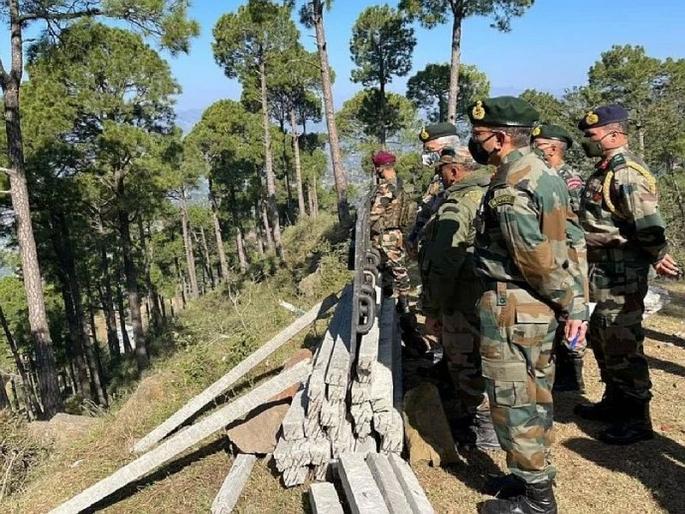 लष्करप्रमुख एमएम नरवणे, पुंछमध्ये नऊ जवानांना आलेले हौतात्म्य आणि दहशतवाद्यांविरोधात सुरू असलेल्या कारवाई दरम्यान दोन दिवसांच्या दौऱ्यावर आहेत. दौऱ्याच्या पहिल्या दिवशी त्यांनी लष्करी अधिकाऱ्यांसोबत बैठक केली आणि सुरक्षा स्थितीचा आढावा घेतला. येथे त्यांच्यासोबत व्हाइट नाइट कोरचे जीओसी, नॉर्दर्न कमांडचे जीओसी आणि इतर अधिकारीही होते. यानंतर ते नगरोटा लष्करी मुख्यालयत गेले. नरवणे यांनी, पुंछमध्ये घेरलेले दहशतवादी कोणत्याही परिस्थितीत पळून जाता कामा नयेत, असे लष्कराच्या अधिकाऱ्यांना सांगितले आहे.