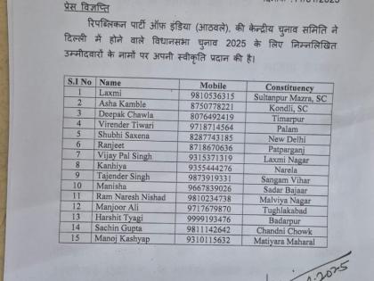 Delhi elections 2025: एनडीएतील घटक पक्ष असलेल्या रामदास आठवले यांच्या आरपीआय पक्षाने दिल्ली विधानसभा निवडणुकीसाठी उमेदवार जाहीर केले आहेत.