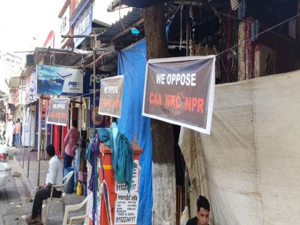 - सीएए, एनआरसी व एनपीआर कायद्याला विरोध दर्शविणारे फलक दुकानाबाहेर लावून चेंबूरमधील व्यापाऱ्यांचा भारत बंदमध्ये सहभाग