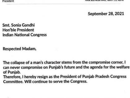 या घडामोडींनंतर सिद्धू यांनी काँग्रेस अध्यक्षा सोनिया गांधी यांना पत्र लिहिले आहे. यामध्ये सिद्धू यांनी म्हटले आहे की, मी पंजाबचे भविष्य आणि पंजाब कल्याणाच्या अजेंड्यासोबत समझोता करू शकत नाही. यामुळे मी पंजाब प्रदेश काँग्रेस कमिटीच्या अध्यक्ष पदावरून राजीनामा देत आहे.