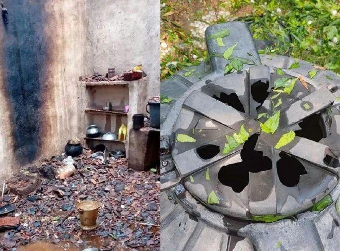 जम्मू काश्मीर, पंजाबसारख्या पाकिस्तानच्या सीमेवर असलेल्या गावांतील घरांवर नेहमीच गोळीबार, उखळी तोफांचा मारा होतो. पाकिस्तानने शस्त्रसंधीचे उल्लंघन केले की या नागरिकांना घर सोडून बंकरमध्ये लपावे लागते. तसाच काहीसा प्रकार छत्तीसगडमध्ये घडला आहे. आकाशातून 'गोळीबार' झाल्याने घरांच्या छपरांना एवढी भोके पडली की अक्षरश: चिंधड्या उडाल्याचे भासत आहे.