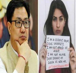 दुसरीकडे याच मुद्द्यावर ट्विट करुन वादात भर घालणारे केंद्रीय गृहराज्यमंत्री किरेन रिजिजू यांनीदेखील आपली भूमिका बदलली आहे. 26 फेब्रुवारी रोजी ट्विट कर त्यांनी विचारलं होतं की, 'माहित नाही या मुलीचं डोकं कोण प्रदुषित रत आहे ?'. गुरमेहरला मिळालेल्या धमकींबाबत विचारलं असता आपल्याला याबद्दल माहित नसल्याचं ते बोलले होते. 'मी प्रचारसभांमुळे मणिपूरमध्ये व्यस्त होतो, मला सर्व गोष्टींची माहिती नाही. मी त्या मुलीच्या अभिव्यक्ती स्वातंत्र्याचा आदर करतो', असं किरेन रिजिजू बोलले.
