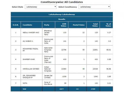 या मतदारसंघाचे नाव आहे लक्षद्वीप. केंद्रशासित प्रदेश असलेल्या लक्षद्वीपमध्ये भाजपाने कादर हाजी यांना उमेदवारी दिली होती. मात्र त्यांना मतदारसंघात फारसा प्रतिसाद मिळाला नाही. अखेर त्यांना अवघ्या 125 मतांवर समाधान मानावे लागले. केवळ नोटाला भाजपापेक्षा कमी म्हणजे 100 मते मिळाली.