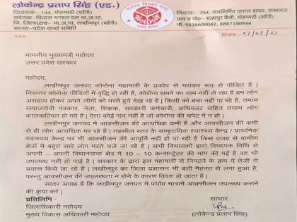 राज्यात कोरोना रुग्णांची संख्येत सातत्यानं वाढ होत आहे. कोरोनाचा कहर थांबत नाहीए. आम्ही असहायपणे आपल्या माणसांना मरताना बघत आहोत. कोरोनाच्या संकटापासून एकही गाव वाचलेलं नाही, असं सिंह यांनी पत्रात म्हटलं आहे. लखीमपूरमध्ये ऑक्सिजनचा खूप मोठा तुटवडा आहे. त्यामुळे कित्येकांचा जीव जातोय. तहसील स्तरावर सामुदायिक आरोग्य केंद्रावर ऑक्सिजनचा पुरवठा होत नाही. त्यामुळे अनेकांचा मृत्यू झाला आहे, असं आमदारांनी पत्रात पुढे नमूद केलं आहे.