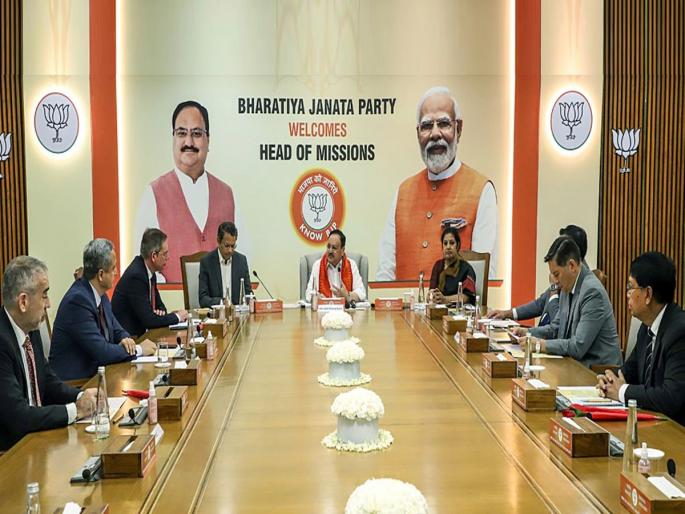 भाजप अध्यक्ष जेपी नड्डा यांनी दिल्लीत पक्षाच्या मुख्यालयात शनिवारी सुमारे दीड तास 7 देशांच्या राजदूतांसोबत बैठक केली. भाजपचे ओव्हरसीज प्रभारी विजय चौथाईवाले म्हणाले, किमान 150 देशांच्या राजदूतांना भेटणे, हे पक्षाचे लक्ष्य आहे. याचाच एक भाग म्हणून शनिवारी तिसऱ्या फेरीच्या भेटीत 7 देशांचे राजदूत येथे आले होते. भाजपने 9 देशांच्या राजदूतांना आमंत्रित केले होते, मात्र 2 देशांचे राजदूत या बैठकीला उपस्थित राहू शकले नाहीत.