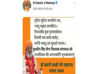 नवी दिल्ली - उत्तर प्रदेश येथील उन्नाव जिल्ह्यात सामूहिक बलात्कारातील पीडितेला जाळून मारल्याने एकाच खळबळ माजली आहे. संपूर्ण देश या घटनेने ढवळून निघाला असताना भाजपच्या खासदाराने ट्विटरवर उन्नावमधील बलात्काराच्या गुन्ह्यातील आरोपी भाजपच्या निलंबित आमदाराला वाढदिवसाच्या शुभेच्छा दिल्याने टीकेची झोड उडाली आहे. या खासदाराचे नाव साक्षी महाराज असं आहे. साक्षी महाराज यांनी केलेले हे ट्विट वायरल झाल्यानंतर डिलीट करण्यात आले आहे.