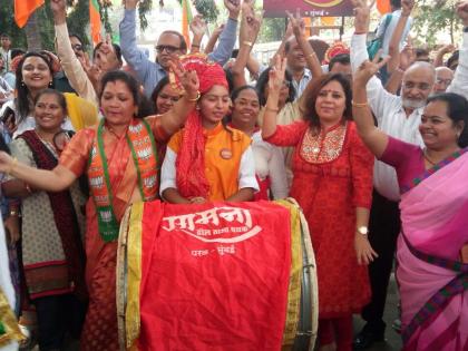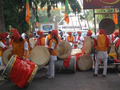 मुंबई - गुजरातमध्ये पुन्हा एकदा भाजपाची सत्ता येणार हे स्पष्ट होताच भाजपाच्या नरिमन पाँईट येथील प्रदेश कार्यालयाबाहेर एकच जल्लोष करण्यात आला. यावेळी मुंबई भाजपाने सेलिब्रेशनसाठी खास सामना ढोल पथक मागवले होते. गुजरात निवडणुकीसाठी प्रचार सुरु असताना शिवसेनेने सामनामधून भाजपावर जोरदार टीका चालवली होती.