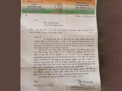 छत्तीसगडच्या कवर्धा येथील बोडला नगरपंचायतीच्या अन्न व नागरी पुरवठा आणि आरोग्य व वैद्यकीय विभाग अध्यक्ष काँग्रेस नेते ओमप्रकाश शर्मा यांनी कोरोना लसीबद्दल अजब दावा केला आहे. थेट धर्माशी लसीचा संबंध जोडल्याची घटना समोर आली आहे. शर्मा यांनी याबाबत जिल्हाधिकाऱ्यांना पत्र लिहिलं आहे. "कोरोना लसीमध्ये गाय, डुक्कर आणि गर्भपात केलेल्या बाळाच्या मांसाचा समावेश आहे. त्यामुळे, धर्माचा आधार देत, मला ही लस घेण्यापासून सूट द्यावी" अशी मागणी त्यांनी पत्रात केली आहे.