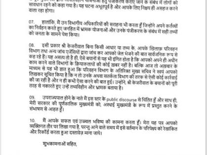 उप राज्यपालांनी पत्रात म्हटले आहे की, "ज्या प्रकारे केजरीवाल यांच्याकडून तुमच्या उपस्थितीत अनाधिकृतपणे वरिष्ठ नागरिक आणि मुख्यमंत्र्यांच्या नावाने महिलांशी संबंधित योजना हवेत घोषणा केल्या जात आहेत, त्यामुळे मुख्यमंत्री पद आणि मंत्रिमंडळाची गरिमा डागाळत आहे", असेही त्यांनी म्हटले आहे.