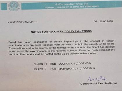 सीबीएसई बोर्डाकडे परीक्षा सुरू असताना काही पेपरांच्यावेळी गैरप्रकार झाल्याच्या काही तक्रारी आल्या होत्या. त्याची दखल घेऊन बोर्डाने गणित व अर्थशास्त्र या दोन विषयांच्या परीक्षा पुन्हा घेण्याचा निर्णय घेतला. जेणेकरून या परीक्षांचे महत्त्व टिकून राहील आणि विद्यार्थ्यांना न्याय वागणूक मिळेल. दरम्यान, हा निर्णय विशिष्ट विभांगापुरता अथवा संपूर्ण देशभरासाठी घेतला आहे, याबाबत बोर्डाकडून अद्याप कोणतेही स्पष्टीकरण देण्यात आलेले नाही. दरम्यान, या फेरपरीक्षेच्या या निर्णयाविरोधात काही पालक आणि शिक्षकांनी दिल्ली उच्च न्यायालयात जाण्याची तयारी केल्याचे समजते.