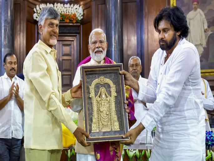 दरम्यान, टीडीपीचे अध्यक्ष अच्चन नायडू, भाजपचे पुरंदेश्वरी आणि जनसेनेचे पवन कल्याण हे राज्यपालांची भेट घेणार आहेत. एनडीए विधीमंडळचा नेता निवड करण्यात आल्याचा प्रस्ताव राज्यपालांना दिला जाणार आहे. यानंतर चंद्राबाबू नायडू राज्यपालांना भेटून सरकार स्थापनेचा दावा करणार आहेत. मिळालेल्या माहितीनुसार, चंद्राबाबू नायडू बुधवारी सकाळी ११.२७ वाजता विजयवाडा विमानतळाजवळ मुख्यमंत्रिपदाची शपथ घेणार आहेत. या शपथविधी कार्यक्रमात पंतप्रधान मोदीही सहभागी होणार आहेत.