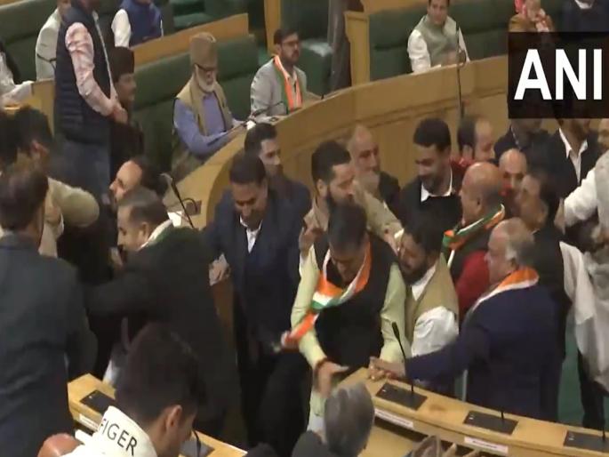 यावेळी समर्थक आणि विरोधक आमदारांमध्ये बाचाबाची झाली.विधानसभेत झालेल्या गदारोळात मार्शल यांनी खुर्शीद अहमद शेख यांना सभागृहाबाहेर काढले. तसेच, मार्शल यांनी भाजपच्या काही आमदारांनाही सभागृहाबाहेर काढले. त्यानंतर भाजपच्या सर्व नेत्यांनी सभात्याग केला. दरम्यान, कालही जम्मू-काश्मीर विधानसभेत कलम-३७० रद्द केल्याच्या मुद्द्यावरून प्रचंड गोंधळ झाला. यावेळी समर्थक आणि विरोधक आमदार परस्परांना भिडले. यात भाजपचे तीन आमदार जखमी झाले आहेत.