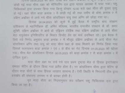 कुनो नॅशनल पार्कमध्ये आणखी एका मादी चित्त्याचा मृत्यू; जाणून घ्या कारण...