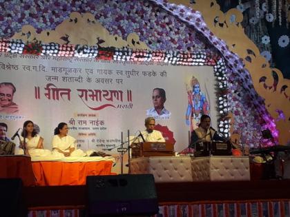 आज सायंकाळी कविश्रेष्ठ स्व. ग. दि.माडगूळकर व गायक स्व. सुधीर फडके यांच्या जन्मशताब्दीनिमित्त “गीत रामायण” कार्यक्रमाचे आयोजन वाराणसी येथे संत कबीर मार्ग, सरोजा पॅलेस येथे करण्यात आले होते. फिल्म सिटीचे उपाध्यक्ष अमरजीत मिश्र (राज्यमंत्री दर्जा) आणि यांनी खास वाराणसीहून लोकमतला ही माहिती दिली. यावेळी येथील मराठी भाषिक देखिल मोठ्या संख्येने उपस्थित होते, असे त्यांनी सांगितले.