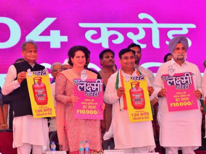 नवी दिल्ली: राजस्थानचे मुख्यमंत्री अशोक गहलोत यांनी आज दोन मोठ्या घोषणा केल्या आहेत. राज्यात काँग्रेसचे सरकार येताच राज्यातील १.०५ कोटी कुटुंबांना ५०० रुपयांना एलपीजी सिलिंडर देण्यात येईल, असे अशोक गहलोत म्हणाले. तसेच गृह लक्ष्मी हमी अंतर्गत, कुटुंबातील महिला प्रमुखाला वर्षाला १०,००० रुपये दिले जातील. ही रक्कम दोन ते तीन हप्त्यांमध्ये उपलब्ध करून दिली जाईल.