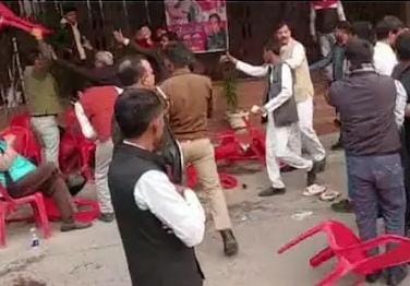 मिळालेल्या माहितीनुसार, आग्रा येथील सूरसदन सभागृहामध्ये काँग्रेसकडून महिलांसाठी कार्यक्रमाचं आयोजन करण्यात आलं होतं. काँग्रेसच्या महासचिव प्रियंका गांधी यांनी दिलेल्या 'लडकी हूं, लड सकती हूं' या नाऱ्याच्या पार्श्वभूमीवर महिला कार्यकर्त्यांसाठी हा कार्यक्रम आयोजित करण्यात आला होता. मात्र यामध्ये काँग्रेसचे कार्यकर्तेच एकमेकांना भिडले. काँग्रेस कार्यकर्ते एकमेकांना खुर्च्यांनी मारत असल्याचं व्हायरल व्हिडीओमध्ये दिसत आहे.