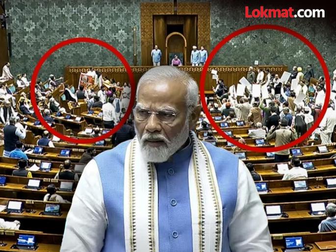 राष्ट्रपतींच्या अभिभाषणावर दोन दिवस झालेल्या चर्चेला पंतप्रधान नरेंद्र मोदी बुधवारी (४ फेब्रुवारी) सायंकाळी उत्तर देणार होते. पण, विरोधकांनी पंतप्रधान मोदींचे भाषण सुरू होण्यापूर्वीच जोरदार घोषणाबाजी केली. माजी लष्करप्रमुख नरवणे यांच्या पुस्तकावरून विरोधकांचा गोंधळ वाढत गेला. त्यावेळी महिला खासदार पंतप्रधानांच्या आसनासमोर येत होत्या.