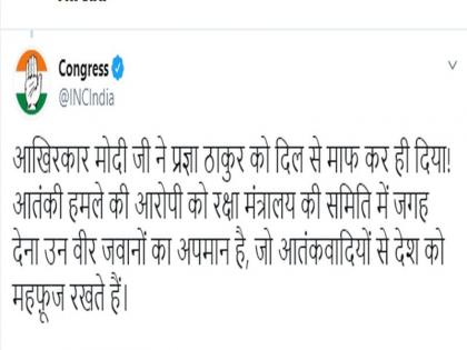 प्रज्ञा सिंह यांच्या संरक्षण मंत्रालय समितीतील निवडीवरून काँग्रेसचा टोला
