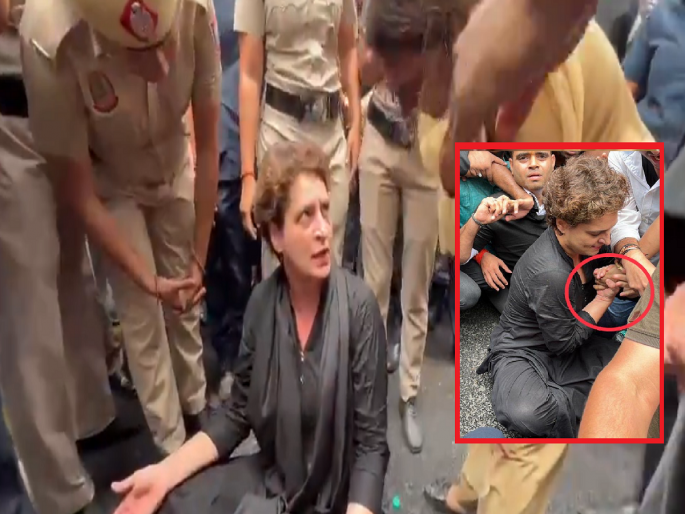 Congress Protest: महागाई आणि बेरोजगारीविरोधात काँग्रेसचे देशव्यापी आंदोलन सुरू आहे. राजधानी दिल्लीतही कांग्रेस नेत्यांनी केंद्र सरकारविरोधात तीव्र आंदोलन केले. यादरम्यान राहुल गांधी आणि प्रियंका गांधींसह अनेक काँग्रेस नेत्यांना ताब्यात घेण्यात आले. प्रियंका गांधींना ताब्यात घेताना पोलिसांसोबत झटापट झाली. दरम्यान, प्रियांका गांधींचा एक फोटो सोशल मीडियावर चांगलाच व्हायरल होत आहे, ज्यामध्ये त्या महिला पोलिस कर्मचाऱ्याचा हात मुरगळताना दिसत आहेत.