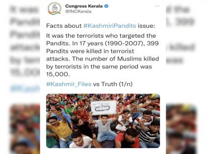 ‘द काश्मीर फाइल्स’वरून केरळ काँग्रेसचं वादग्रस्त ट्विट; पंडित ३९९ पण मुस्लीम १५,००० मारले गेले