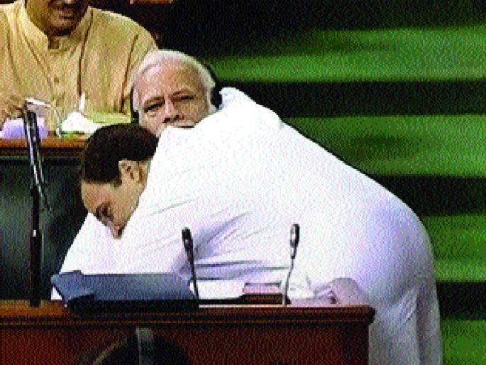 - शीलेश शर्मा नवी दिल्ली : संसदेत अविश्वास ठरावावरील चर्चेवेळी नवा वाद निर्माण झाला. काँग्रेसचे अध्यक्ष राहुल गांधी यांनी भाषण संपताच पंतप्रधान नरेंद्र मोदी यांच्या जवळ जाऊ न त्यांना आलिंगन दिले, पण त्यांच्या या ‘जादू की झप्पी’बद्दल अध्यक्ष सुमित्रा महाजन यांनी नापसंती व्यक्त केली. मोदी, रा. स्व. संघ व भाजपाचे आपण आभारच मानतो, असे उपरोधिकपणे म्हणताना, त्यांच्यामुळेच आपणास भारतीय असणे काय असते, हे समजू शकले, असा टोला राहुल गांधींनी लगावला. तुमच्या मनात माझ्याविषयी राग आहे, तुम्ही मला पप्पू म्हणता, शिव्या देता, असे असूनही माझ्या मनात तुमच्याविषयी क्रोध वा द्वेष नाही. कारण मी काँग्रेसी आहे. काँग्रेसमध्ये क्रोध, द्वेषाला जागाच नाही. आम्ही भाजपांमध्येही प्रेमाचे वातावरण निर्माण करू आणि तुम्हाला काँग्रेसी बनवू, या शब्दांत भाषण संपवून राहुल पंतप्रधानांच्या स्थानापाशी गेले. ते का आले, हे मोदींना लक्षात आले नाही. तोपर्यंत राहुल यांनी मोदींना मिठी मारली आणि लगेच निघाले.गृहमंत्री राजनाथ सिंह ठरावावर बोलण्यासाठी उभे राहिले, तेव्हा त्यांनी राहुल यांच्या कृतीवर कठोर टिप्पणी केली. अकाली दलाच्या हरसिमरत कौर व भाजपाच्या किरण खेर यांनीही राहुल गांधी यांच्या कृतीवर नापसंती व्यक्त केली.फारुख अब्दुल्ला यांच्यासह विरोधी पक्षांच्या अनेक संसद सदस्यांनी राहुल गांधी यांची ही कृती योग्य असल्याचे सांगत, स्पष्ट एकूणच राहुल यांच्या ‘प्यार की झप्पी’ची दिवसभर संसदेत व सोशल मीडियावरही चर्चा होती.