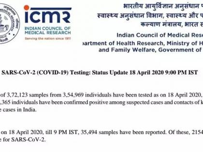 Total sample tested 3,72,123. Total individuals tested 3,54,969. Samples tested today 35,494: Indian Council of Medical Research (ICMR) #Coronaviruspic.twitter.com/44zoXG32mF