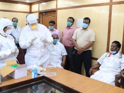 Puducherry: #COVID19 test of CM V Narayansamy, Assembly Speaker VP Sivakolundu, Ministers, MP and MLAs was done at the legislative assembly today. pic.twitter.com/hkFh3RCuL9