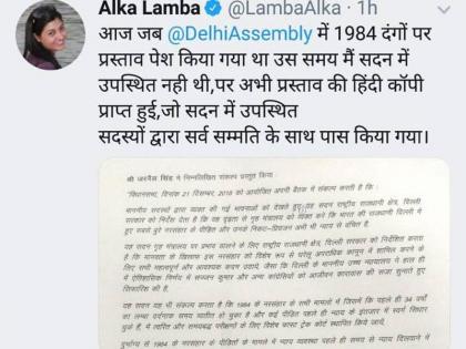दरम्यान, राजीव गांधी यांच्याविरोधात पार्टीनं मांडलेल्या प्रस्तावासंबंधी अलका लांबा नाराज होत्या. अलका लांबा यांनी आपच्या भूमिकेविरोधात जाऊन सोशल मीडियावर संबंधित प्रस्तावाची माहिती शेअर करत आपली प्रतिक्रिया दिली. यावरुन पक्षाचे नेतृत्व लांबा यांच्यावर नाराज झाले. दुसरीकडे, पार्टीनं मांडलेल्या प्रस्तावाचा विरोध दर्शवत वॉक ऑउट केल्याचा दावा लांबा यांनी केला आहे.