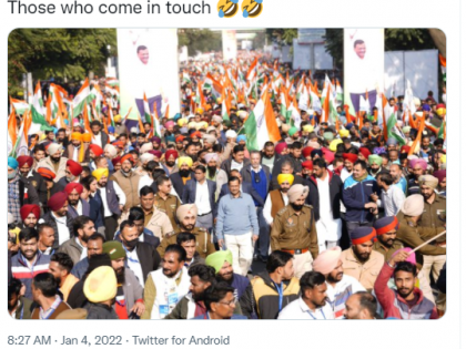 नेटकऱ्यांनी नुकत्याच पार पडलेल्या पंजाब आणि चंडीगढमधील केजरीवाल यांच्या रॅलीचे फोटो शेअर केले आहेत. तसंच यासोबत त्यांनी 'Those who come in touch' असं कॅप्शनही देत आहेत. नेटकऱ्यांनी जे फोटो ट्विटरवर शेअर केले आहेत, ते एक दोन दिवसांपूर्वी केजरीवाल यांच्या चंडीगढ येथील रॅलींचे आहेत. यामध्ये ते विनामास्क दिसत आहेत. हे फोटो शेअर करत नेटकऱ्यांनी त्यांच्या संपर्कात आले आहेत, त्यांनी कोरोना चाचणी करून घ्यावी, परंतु यात तर ते हजारो लोकांमध्ये विनामास्क दिसत आहेत, असंही म्हटलंय.