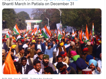 अरविंद केजरीवाल यांनी ३१ डिसेंबर रोजी पंजाबच्या पटियालामधून शांती मार्च काढला होता. यादरम्यान त्यांनी मास्कही लावला नव्हता. शिवाय त्यांच्या जवळपास मोठ्या प्रमाणात गर्दीही जमली होती. या गर्दीत अवघे काही लोक सोडले तर कोणाच्याही तोंडाला मास्क नाही.