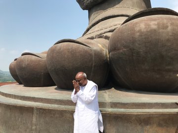 देवेगौडा यांनी ट्विट करत पुतळ्यासोबत काढलेला फोटो पोस्ट केला. यावर मोदी यांनी तुम्हाला पाहून आनंद झाल्याचे म्हटले आहे.