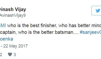 आयपीएलच्या सुरूवातीला पुण्याच्या मुंबईवरील पहिल्या विजयानंतर हर्ष गोयंका यांनी धोनीच्या चाहत्यांचा रोष ओढवून घेतला होता. मॅच विनिंग खेळी करणा-या स्मिथचं त्यांनी कौतूक केलं होतं. यावेळी त्यांनी, "स्मिथने दाखवून दिलं कोण आहे जंगलचा राजा, आपल्या कामगिरीने त्याने धोनीला पूर्णतः झाकोळलं, स्मिथची कर्णधारपदी निवड करण्याचा निर्णय योग्यच होता" असं ट्विट केलं होतं. त्यांच्या या ट्विटनंतरही धोनीच्या चाहत्यांनी गोयंका यांना चांगलंच धारेवर धरलं होतं. वाढती टीका पाहून गोयंका यांनी ते ट्विट नंतर डिलीट केलं.