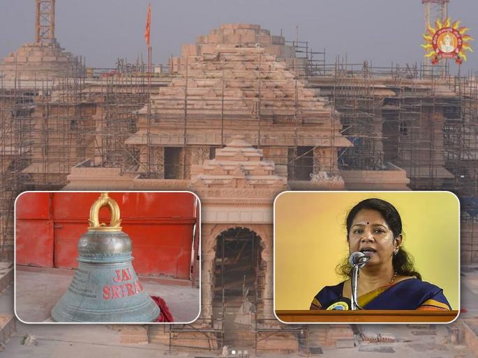 अयोध्येत नव्याने उभारण्यात येत असलेल्या राम मंदिरामध्ये २२ जानेवारी रोजी प्राणप्रतिष्ठापना सोहळा होणार आहे. या सोहळ्याकडे संपूर्ण देशवासियांचं लक्ष लागलेलं आहे. एकीकडे सत्ताधारी भाजपाकडून या सोहळ्यातील सहभागासाठी जोरदार तयारी सुरू आहे. तर दुसरीकडे या कार्यक्रमाला उपस्थित राहायचं की नाही यावरून विरोधी पक्षांमध्ये मतमतांतर दिसत आहे. त्यातच आता तामिळनाडूमधील सत्ताधारी पक्ष असलेल्या डीएमकेमधून राम मंदिरासंदर्भात एक मोठी बातमी समोर आली आहे. गेल्या काही काळात डीएमकेच्या नेत्यांकडून सनातन धर्मावर सातत्याने टीका करण्यात येत होती. मात्र याच डीएमकेच्या नेत्या कनिमोळी यांच्या कुटुंबीयांकडून राम मंदिरासाठी तब्बल ६१३ किलो वजनाची घंटा भेट देण्यात आली आहे. अष्टधातूपासून बनवलेल्या या घंटेवर इंग्रजीमध्ये जय श्रीराम असं लिहिलेलं आहे.