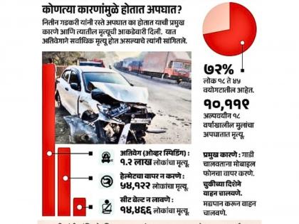 गडकरींनी सांगितले की, देशात दरवर्षी ५ लाख अपघात होतात. १.८ लाख लोक जीव गमावतात. मृतांमध्ये १८ ते ४५ वयोगटातील तरुणांचे प्रमाण ७२% आहे. १८ वर्षांपेक्षा कमी वय असलेल्या मृतांचा आकडा १०,११९ आहे. विना हेल्मेट ५४ हजार, तर विना सीटबेल्ट १४ हजार लोकांचा मृत्यू झाला आहे.