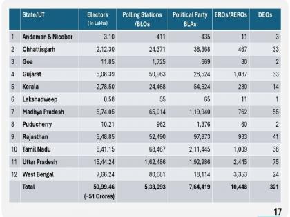 बिहारमधील मतदार यादी दुरुस्ती मोहिम' च्या तयारीच्या आधारे, निवडक राज्यांमध्ये SIR सुरू केले जाईल. प्रत्येक मतदान केंद्रावर १००० मतदार असतील. SIR चा दुसरा टप्पा १२ राज्यांमध्ये सुरू होईल, असे मुख्य निवडणूक आयुक्तांनी सांगितले.