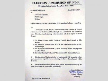 EC writes to Chief Secy West Bengal regarding transfer/posting of few officers in the state in view of the poll preparedness. Rajesh Kumar - ADG, Pollution Control Board - has been posted as CP, Kolkata. Natarajan Ramesh Babu - ADG & IGP, Operations - posted as CP, Bidhan Nagar. pic.twitter.com/16CoJ6Jinx
