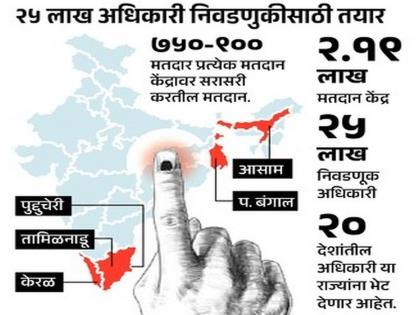 पश्चिम बंगालमध्ये २ टप्प्यात, तामिळनाडू, केरळ, आसाम, पुद्दुचेरीमध्ये एका टप्प्यात मतदान; एकूण ८२४ जागांसाठी १७.४ कोटी नागरिक बजावणार हक्क; दक्षिणेत मिळेल का 'कमळ'ला एंट्री?