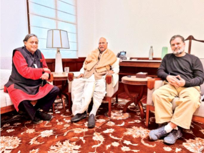 संसद भवन संकुलातील खरगे यांच्या कक्षात त्यांच्या समवेत शशी थरूर यांनी सुमारे पावणे दोन तास चर्चा केली. खरगे व राहुल गांधी यांच्याशी अतिशय चांगली, सकारात्मक चर्चा झाल्याचे ते म्हणाले.
