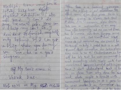 माझ्या तरुण मुलासाठी मी काहीही करू शकलो नाही. विवेकला गायक होण्यासाठी मदत करावी, अशी विनंती दास यांनी पंतप्रधान नरेंद्र मोदी यांना केली आहे.