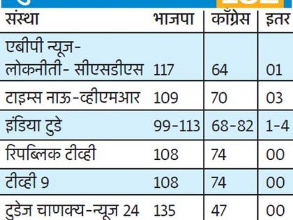 संपताच दोन्ही राज्यांमध्ये घेतलेल्या एक्झिट पोलचे निष्कर्ष वृत्तवाहिन्यांनी जाहीर केले. त्यांच्या निष्कर्षात भाजपा व काँग्रेस या दोन पक्षांना मिळू शकणा-या जागांबाबत एकमत नसले, तरी गुजरातमध्ये पुन्हा भाजपाचीच सत्ता येईल आणि हिमाचल प्रदेशात सत्तांतर होऊन आणखी एक काँग्रेसशासित राज्य भाजपाच्या झोळीत जाईल, यावर या सर्वांमध्ये एकवाक्यता आहे.